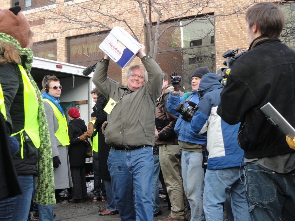 “After two months of flexing their volunteers’ political muscles on the streets, Wisconsin Democrats delivered a powerful first punch in the recall rumble against Gov. Scott Walker today when they filed more than 1 million signatures to recall the first-term Republican governor.”